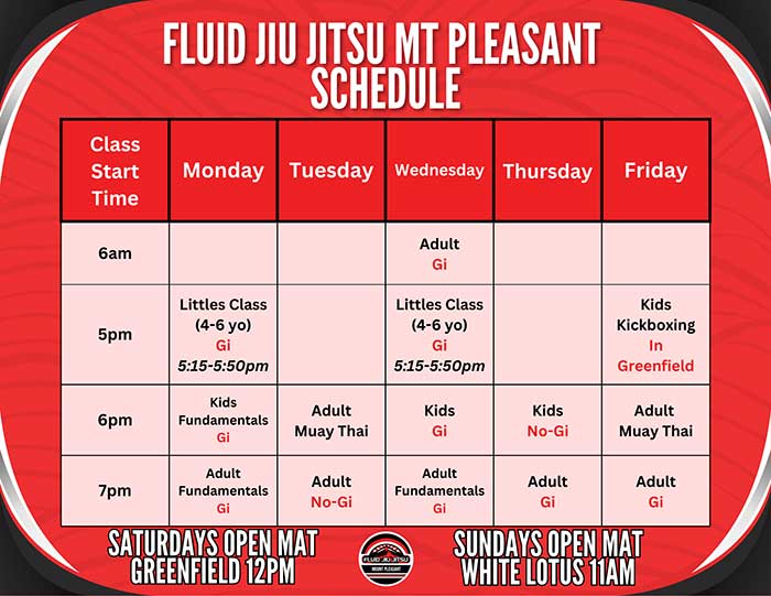 Fluid Jiu Jitsu is a Brazilian Jiu Jitsu (BJJ) academy located in Mount Pleasant, Wisconsin. We offer classes for all ages and skill levels, from kids to adults, beginners to advanced. Our goal is to provide a safe and fun environment where everyone can learn and improve their BJJ skills.